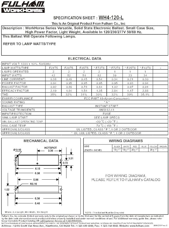 Fulham 10004 workhorse 2 ballast. Fulham ballast wh5 120 l wiring diagram fulham lighting fulham icehorse cold temperature ballast ih2 unv 270 t8. This is an original product from fulham co., inc. L = length, w = width, h = height note : This ballast will operate following lamps. Workhorse series versatile, solid state electronic ballast. L = length, w = width, h = height note :